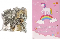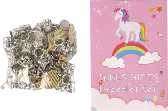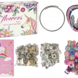 Es enthält außerdem 30 farbige Kunststoffperlen und bis zu 60 Perlen in Silber- und Goldoptik mit niedlichen Motiven von Tieren, Pflanzen und weiteren kindgerechten Designs. Die elegante Verpackung mit Blumenmotiv verleiht dem Set einen besonderen Charme und eignet sich ideal als Geschenk.