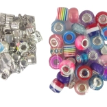 Das Set enthält dreißig Kunststoffperlen sowie sechzig silberne und goldene Perlen mit fröhlichen Motiven. Bestens geeignet für die Gestaltung kreativer und individueller Armbänder.