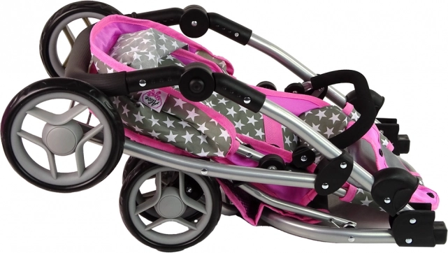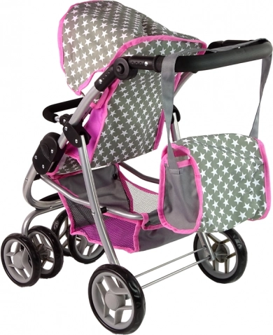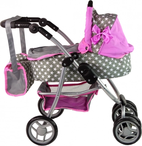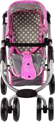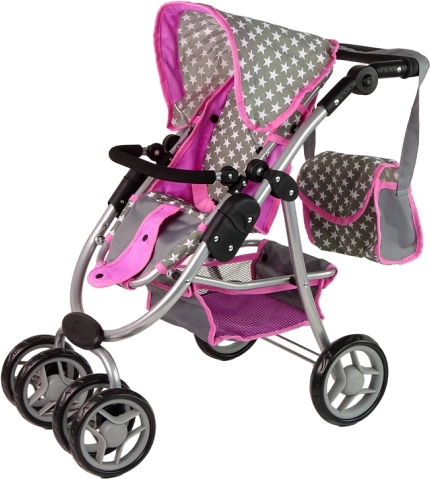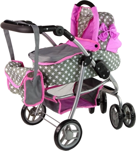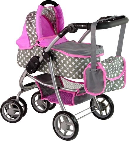 Der Kinderwagen mit rosa und grauen Sternen bereichert das tägliche Spiel Ihrer Kinder. Dieser aus hochwertigen Materialien hergestellte Wagen vermittelt den Kindern ein Gefühl von Fürsorge und Verantwortung. Das realistische Design erinnert an einen echten Kinderwagen und die Vorderräder ermöglichen eine einfache Steuerung und Manövrierfähigkeit.