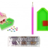 Kreativ-Set für alle, die gerne schöpferisch tätig sind. Dieses Set ermöglicht es Kindern und Erwachsenen, verschiedene Oberflächen mit bunten Kristallen zu dekorieren und einzigartige Verzierungen zu schaffen. Der Prozess erfordert Geduld, Präzision und manuelle Fähigkeiten, was eine großartige Gelegenheit zur Verbesserung ist.