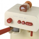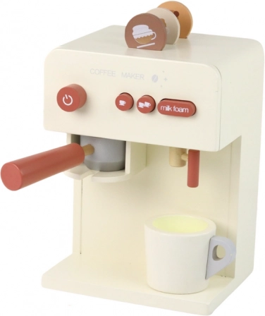 Die hochwertige Kombination aus Holz und Kunststoff ist langlebig und angenehm anzufassen. Das Spiel mit der Kaffeemaschine fördert die Feinmotorik, die Hand-Auge-Koordination sowie soziale Fähigkeiten beim gemeinsamen Spiel. Dank der kompakten Abmessungen lässt sich die Kaffeemaschine leicht transportieren und verstauen.