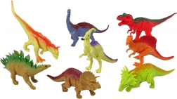 Das Set enthält acht große und vier kleine Dinosaurierfiguren, jede stellt eine andere Art dar und hat ihre eigene, einzigartige Farbe.