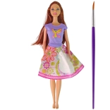 Diese bezaubernde Puppe mit langen, dunklen Haaren verzaubert auf den ersten Blick. Sie trägt ein hübsches Kleid, das Kinder nach ihrer Fantasie ausmalen können – mit dem beiliegenden Pinsel. Eine großartige Wahl für kleine Modedesignerinnen und alle, die Basteln und Gestalten lieben.