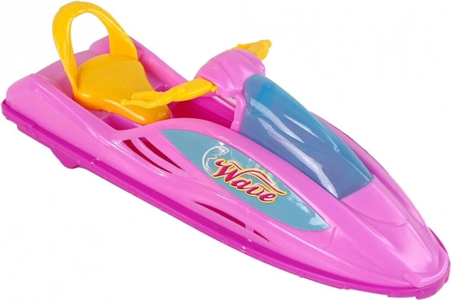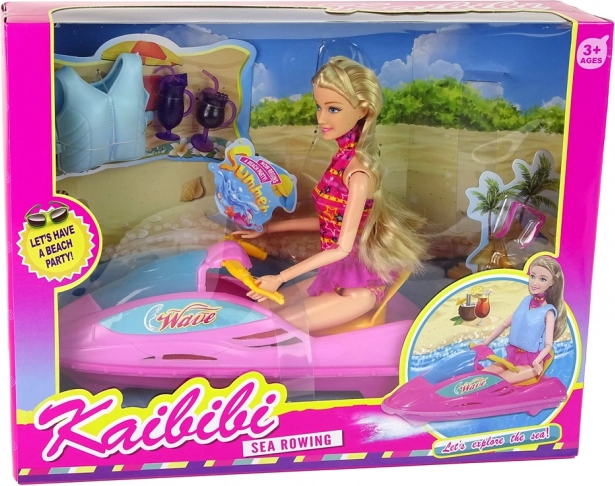 Genießen Sie endlosen Spaß mit diesem kreativen Spielzeug, das jedem Spiel viel Freude bringt. Der Jetski besteht aus strapazierfähigem Kunststoff, ausgestattet mit Kunststoffrädern und beweglichen Teilen, die dynamisches Spielen ermöglichen. Dazu gehört eine wunderschöne Puppe mit langen blonden Haaren, gekleidet in einem rosa Badeanzug und rosa Sandalen, die jedem Spiel Charme verleihen.