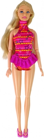 Die Puppe ist mit langen blonden Haaren und einem schönen rosa Badeanzug ausgestattet, der jedes Spiel unterstützt.