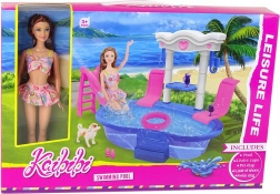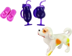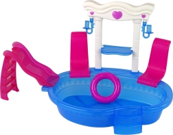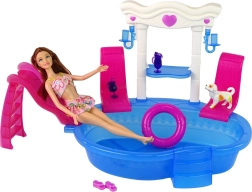 Zum Set gehört ebenfalls eine Rutsche, die Kinder lieben! Accessoires wie lila Getränke und rosa Flip-Flops verstärken die sommerliche Atmosphäre. Zusätzlich gibt es einen Schwimmring, der noch mehr Spielmöglichkeiten bietet.