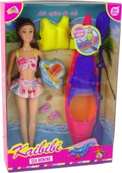 Die im Set enthaltene Puppe hat ein stylisches zweiteiliges Strandoutfit und lange braune Haare, was sie zur idealen Begleiterin für jede fantasievolle Spielstunde macht.