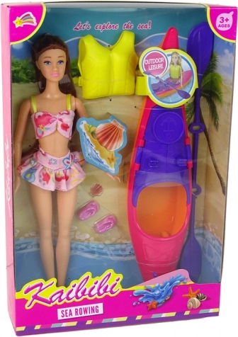 Entdecken Sie das Abenteuervergnügen mit diesem erstaunlichen Puppen- und Kajakset. Die Kollektion umfasst eine Puppe in bunter Strandkleidung, die bereit für Wasserabenteuer ist. Das lange braune Haar der Puppe glänzt wunderschön in der Sonne und die rosa Sandaletten verleihen eine ordentliche Portion Stil. Das leuchtend rosa Kajak bietet realistische Spielfunktionen mit einem beweglichen Paddel und einer gelben Schwimmweste für sicheres Spielen im Wasser.
