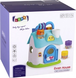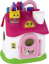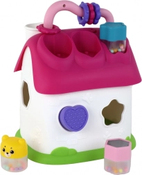 Das Häuschen hat vier verschiedene Öffnungen auf dem Dach zum Sortieren nach Form und Farbe und farbige Türen, die sich öffnen lassen. Auf dem Dach befindet sich ein Fenster mit einem lächelnden Gesicht, das leuchtet und Geräusche erzeugt, fördert die Interaktion und das Interesse des Kindes.
