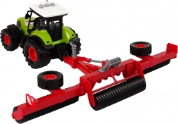 Der manuelle Antrieb ermöglicht die Fahrt vorwärts und rückwärts, während drei Soundmodi (Rückwärtsfahrt, Hupen, Anfahren) und integrierte Lichter das Spiel besonders authentisch machen. Der Grubber lässt sich leicht an den Traktor anhängen und seine beweglichen Teile imitieren echte landwirtschaftliche Geräte.
