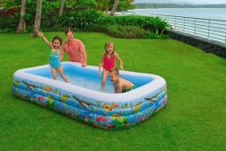 Genießen Sie gemeinsam mit Ihren Kindern Wasserspaß direkt in Ihrem Garten! Das aufblasbare Schwimmbecken mit Unterwasserwelt-Motiv bietet ausreichend Platz für die ganze Familie.
