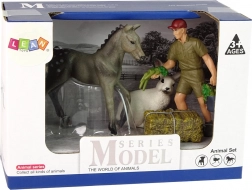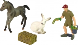 Bauernhof-Figuren-Set – graues Pferd, Hase und Landwirt