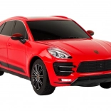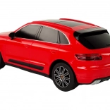 Detailgetreue Ausführung des Porsche Macan Turbo im Maßstab 1:24 mit elegantem rotem Lack und getönten Scheiben – ein Blickfang auf den ersten Blick.