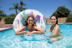 Das robuste Material mit 0,25 mm Stärke widersteht der alltäglichen Nutzung am Pool und am Meer. Dank tropischer Motive mit Palmen oder Flamingos zieht der Ring die Blicke auf sich und verleiht Ihrer Sommerausrüstung einen frischen Stil.