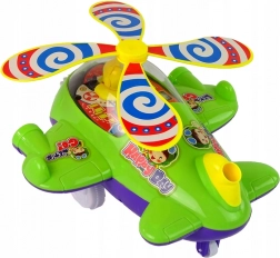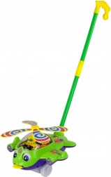 Der grüne Schub-Helikopter mit Pilot bringt Freude und Lachen in die Kinderwelt. Wenn der Rotor zu drehen beginnt, ertönt ein lustiges Klingelgeräusch, das Kinder begeistert. In der Kabine des Helikopters sitzt ein kleiner Pilot, der das verspielte Design des Spielzeugs abrundet.