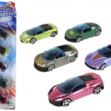 Set aus fünf Autos in verschiedenen Farben wie dunkelgrün, hellgrün, grau, lila und rosa, ist ein ideales Geschenk für kleine Motorsportfans. Die Autos haben ein modernes sportliches Design mit realistischen Rädern und getönten Fenstern. Dank der Größe von 7 cm x 2 cm x 3 cm passen sie bequem in Kinderhände und beeindrucken gleichzeitig durch ihre detailreiche Ausführung.