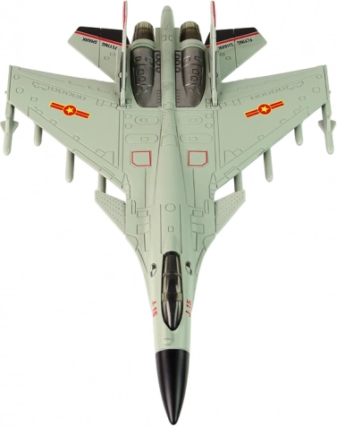 Das Modell ist in einer authentischen grauen Farbe gehalten, die die Realitätsnähe eines echten Jagdflugzeugs erhöht. Kinder und Erwachsene werden von seinem beeindruckenden Aussehen begeistert sein. Gummiräder ermöglichen eine reibungslose Bewegung auf verschiedenen Oberflächen.