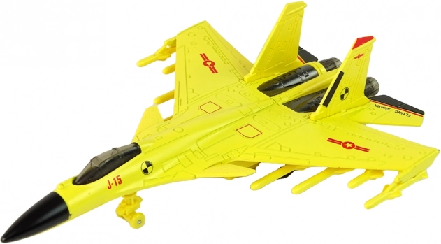 Elegantes gelbes Design: Das Flugzeug ist in authentischer gelber Farbe gefertigt, die einem echten Jäger ähnelt. Es verfügt über Gummireifen für eine sanfte Bewegung auf verschiedenen Oberflächen.