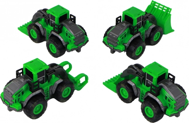 Jeder Traktor ist mit verschiedenen funktionalen Elementen wie einem Holzgreifer oder einem Rasenmäher ausgestattet, was die Spielmöglichkeiten erweitert.