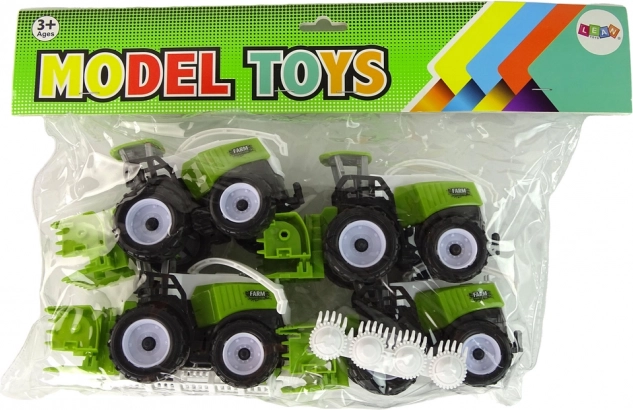 Das Set umfasst vier Traktoren und Zubehör, was verschiedene Spiele und Geschichten für kleine Landwirte ermöglicht.