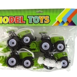 Das Set mit vier Kindertraktoren in realistischem Grün ist für kleine Liebhaber von Landmaschinen entworfen. Realistisches Design und funktionale Details bieten den Kindern die Möglichkeit zu kreativem Spielen. Hergestellt aus robustem Kunststoff, garantieren diese Spielzeuge lang anhaltenden Spielspaß. Jeder Traktor ist 16 cm x 11 cm x 9 cm groß, leicht zu handhaben und bietet die Möglichkeit zur Kombination mit Nachbildungen von landwirtschaftlichen Geräten.