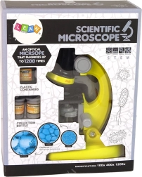 Dieses gelbe Kindermikroskop ist eine hervorragende Wahl für die ersten Schritte in die Welt der Biologie und Naturwissenschaften. Dank des drehbaren Objektivrevolvers mit drei Linsen wählen Sie mühelos die Vergrößerungen 100×/400×/1200×; die sanfte Nachfokussierung und der praktische Objekttisch sorgen für übersichtliche Beobachtungen.