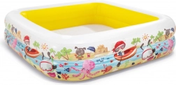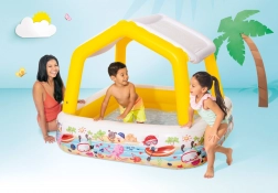 Das aufblasbare INTEX Kinderbecken mit Überdachung ist ideal für erfrischenden Sommerspaß im Garten. Die quadratische Form mit den Maßen 157 × 157 cm und einer Höhe von 122 cm bietet reichlich Platz zum Spielen, während das Fassungsvermögen von 280 l bei 20 cm Wasserstand sicheres und komfortables Planschen gewährleistet. Robustes Vinyl (0,25 mm) und weiche, aufblasbare Wände erhöhen Komfort und Sicherheit.