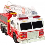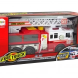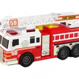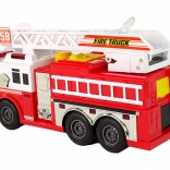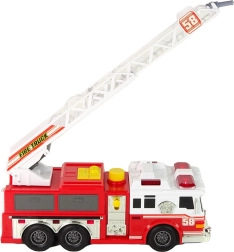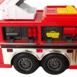 Dieses detailreich gestaltete rote Feuerwehrauto zieht Kinder in die Welt der Rettungskräfte. Es bietet funktionale Elemente wie eine auszieh- und drehbare Leiter, Licht- und Soundeffekte sowie sogar einen Wasseranschluss, der über einen großen gelben Knopf aktiviert wird, um das Löschen zu simulieren.