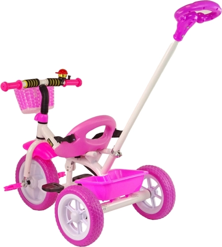 Die abnehmbare Schiebestange ermöglicht es Eltern, das Dreirad komfortabel und sicher zu führen, bis das Kind bereit ist, selbstständig zu fahren.