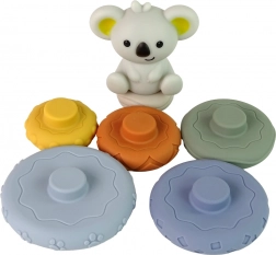 Silikonpyramide mit Koala bietet ein unterhaltsames und sicheres Spielerlebnis für Säuglinge. Das Spielzeug umfasst verschiedene farbige und texturierte Ringe, die Ihr Kind leicht greifen, drehen und in verschiedenen Konfigurationen stapeln kann, was die Hand-Augen-Koordination und das logische Denken verbessert.