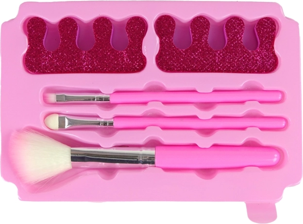 Für ein präzises Make-up enthält das Set drei Schminkpinsel, die ein exaktes Auftragen der Produkte und das Erzeugen verschiedener Effekte ermöglichen. Glitzernde Schwämmchen zum Nagellack-Auftragen sorgen zudem für noch mehr Spaß beim Gestalten des eigenen Looks.