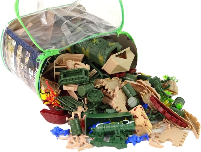 Dieses umfangreiche Militär-Set ermöglicht den Aufbau eines vollständigen Schlachtfelds mit Verteidigungslinien, Türmen, Artillerie und Fahrzeugen wie Panzern und Transportern. Bäume, Fässer und weiteres Zubehör schaffen ein authentisches Militärgelände, das stundenlanges kreatives Spielen unterstützt.