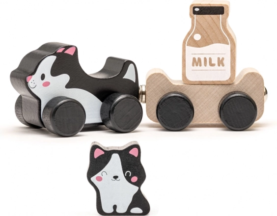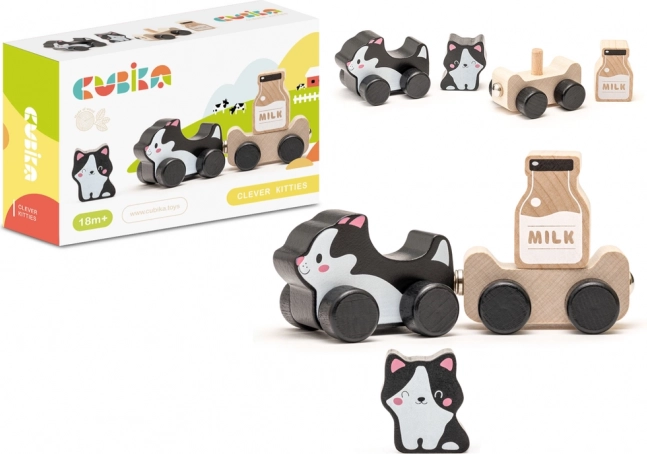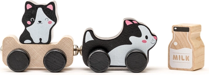 Entdecken Sie das zauberhafte Holzspielzeug Kluge Kätzchen – ideal für die Kleinsten! Dieses Set besteht aus einer Katze, einem Anhänger, einem kleinen Kätzchen und Milch. Die Teile des Spielzeugs können in Bewegung gesetzt werden, und Ihr Kind kann das Kätzchen oder die Milch dank der Magnete auf dem Anhänger transportieren.
