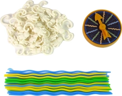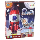 Beginnen Sie das Spiel, indem Sie die Rakete zusammenbauen und die Stäbe in die entsprechenden Öffnungen stecken. Die Astronauten, die vom oberen Ende des Turms hinabgelassen werden, haken sich mit Teilen ihres Raumanzugs an die Stäbe. Sind alle Astronauten platziert, kann der Spaß beginnen. Der erste Spieler wählt durch Drehen des Ziehrädchens die Farbe eines Stabs. Anschließend muss er den Stab in der entsprechenden Farbe vorsichtig entfernen und dabei versuchen, die Astronauten nicht fallen zu lassen.