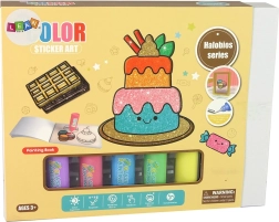 Erleben Sie die kreative Welt mit unserem unvergleichlichen Set, das eine Vielzahl thematischer Aufkleber umfasst, die an köstliche Kuchen, Macarons und Schokoladen erinnern. Kinder können nach ihrer eigenen Fantasie malen und gestalten. Details und Farben liegen in Ihrer Hand: Mit den mitgelieferten 8 Farben und Glitzern verleihen Sie der Glasdekoration einen wunderschönen Glanz.