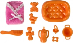 Das Set enthält viele Accessoires, einschließlich einer Bürste, Schnuller, Fläschchen und mehr, die es den Kindern ermöglichen, sich liebevoll um die Puppen zu kümmern.