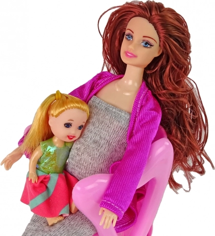 Zusätzlich zur Hauptpuppe umfasst das Set eine kleine Mädchenpuppe und eine Mini-Kinderpuppe, jede mit eigenen Details und Maßen.