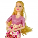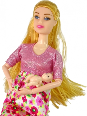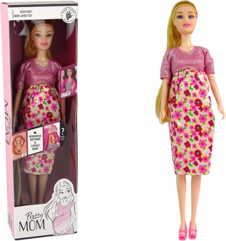 Diese schöne schwangere Puppe mit langen blonden Haaren und reizenden rosa Kleid mit Blumenmotiv bringt Magie und Stil in das Spiel. Der Bauch lässt sich leicht flach drehen. Sie ist ideal für kleine Mädchen, die Puppen und das Erfinden von magischen Geschichten lieben.