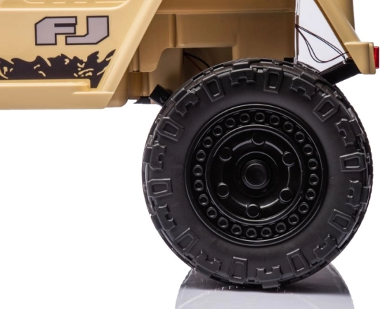 Entdecken Sie ein Kinderfahrzeug, das realistische Offroad-Optik mit Komfort und Sicherheit verbindet. Das elektrische Auto TOYOTA FJ in Khaki besitzt markante Räder mit grobem Profil, einen Schutzrahmen und Lichter – genau das, was Kinder auf abenteuerlichen Ausflügen lieben.