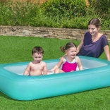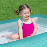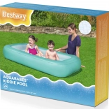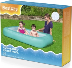 Das aufblasbare Planschbecken BESTWAY Aquababes ist die ideale Wahl für die ersten Wasserspiele im Garten. Dank des weichen, luftgepolsterten Bodens ist Sitzen und Krabbeln für Kinder bequem und sicher, während der breite umlaufende Ring die Form hält und Stabilität bietet.