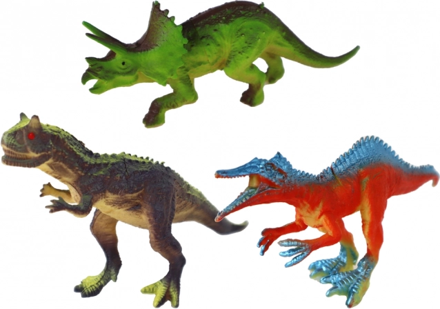 Sechs verschiedene Dinosaurier in kräftigen Farben mit effektvoller Oberflächenveredelung regen die Fantasie an und begeistern auf den ersten Blick.
