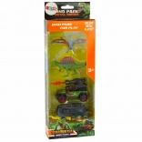 Die Figuren überzeugen durch auffällige Farbgestaltung und realistische Formen – ein Pteranodon mit ausgebreiteten Flügeln und ein räuberischer Spinosaurus mit Rückenaufsatz. Das Auto mit beweglichem Geschoss unterstützt actionreiche Geschichten, während der Anhänger mit öffnenden Türen einfaches Be- und Entladen ermöglicht.