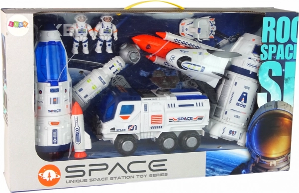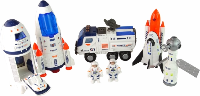 Das Herzstück des Sets ist eine große Weltraumrakete in Blau und Weiß. Sie verfügt über präzise ausgearbeitete Details, einschließlich Raketentriebwerken, Einstiegstüren und Kabinenfenstern. An der Spitze der Rakete ist mittels Steckverbindungen ein Raumschiff befestigt. Das Raumschiff ist ebenfalls blau-weiß und hat eine zu öffnende Kabine für Astronauten.
