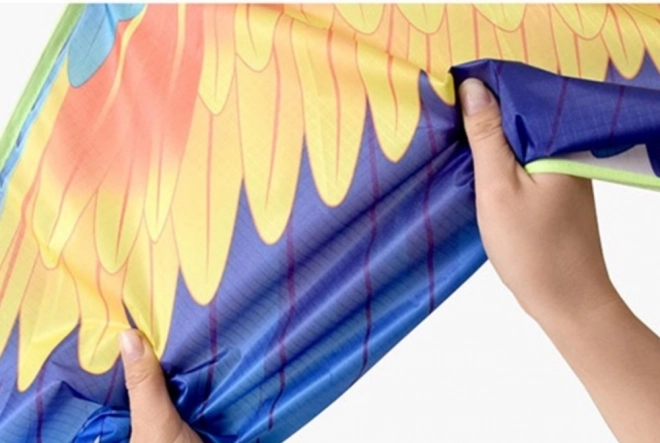 Dieser großformatige Drachen in Form eines exotischen Vogels besticht durch leuchtende Farben und lange Bänder, die eine effektvolle Spur am Himmel hinterlassen. Hergestellt aus robustem und leichtem Nylon trotzt er üblichen Witterungsbedingungen und bietet dank der großen Spannweite einen stabilen, gleichmäßigen Flug.
