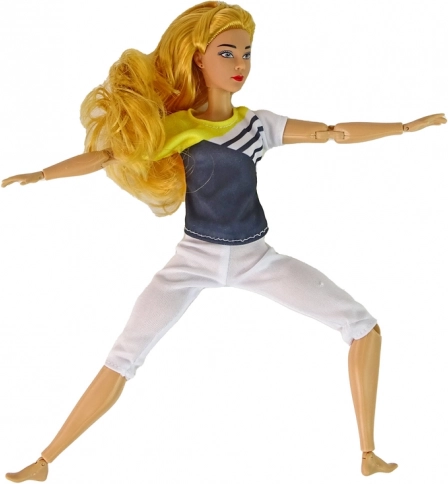 Die Haare lassen sich kämmen und stylen, das sportliche Outfit unterstreicht das thematische Spiel. Die Matte 12 × 10 cm ermöglicht ein eigenes Mini-Yogastudio.