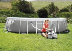 Die INTEX-Sandfilteranlage ist die ideale Wahl für mittelgroße und große Aufstellpools. Die hohe Durchflussrate von 5700 l/h und das Hydro Aeration-System verbessern die Zirkulation und Sauerstoffanreicherung des Wassers deutlich, was sich in seiner Klarheit und dem Badekomfort widerspiegelt. Ein korrosionsbeständiger Tank, ein übersichtliches Manometer und ein drehbarer Ringflansch erleichtern Installation und Wartung.
