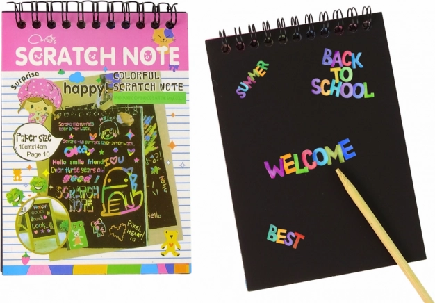 Kratzer-Notizbuch ist ein interaktives Spielzeug, das für Kinder ab 3 Jahren entworfen wurde. Enthält 10 schwarze Seiten mit den Abmessungen 10 cm x 14 cm. Ein kreatives Spielzeug, das manuelle Fähigkeiten fördert und die Vorstellungskraft der Kinder anregt.