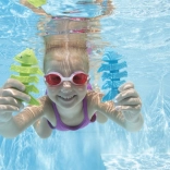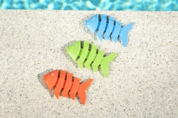 Das Set lustiger Tauchfischchen verwandelt jedes Badeerlebnis in ein Abenteuer. Drei bunte Fischchen (Orange, Grün und Blau) sind so entworfen, dass sie auf den Boden sinken und Kinder zum Tauchen anregen. Beim Spielen entwickeln sie Bewegungskoordination und verbessern ihre Schwimmfähigkeiten.