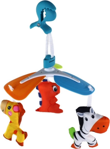 Dies ist die ideale Lösung, um das Kind überall und jederzeit zu unterhalten und zu stimulieren. Das hängende Karussell am Clip ist praktisch, leicht tragbar und eignet sich hervorragend sowohl für den Hausgebrauch als auch für Spaziergänge. Es ermöglicht dem Kind, neue Formen und Texturen zu entdecken, was seine sensorische und emotionale Entwicklung fördert.