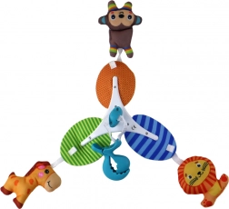 Das Karussell wird mit einem speziellen Clip befestigt, was sein einfaches und sicheres Anbringen an beliebigen Orten ermöglicht. Sie können es am Bettchen, Kinderwagen oder Tragegurt anbringen und somit dem Kind jederzeit Freude an den bunten Tieren bereiten.